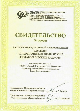 С 2012 года МБОУ «Лицей № 6 г. Горно-Алтайска» присвоен статус региональной стажировочной площадки